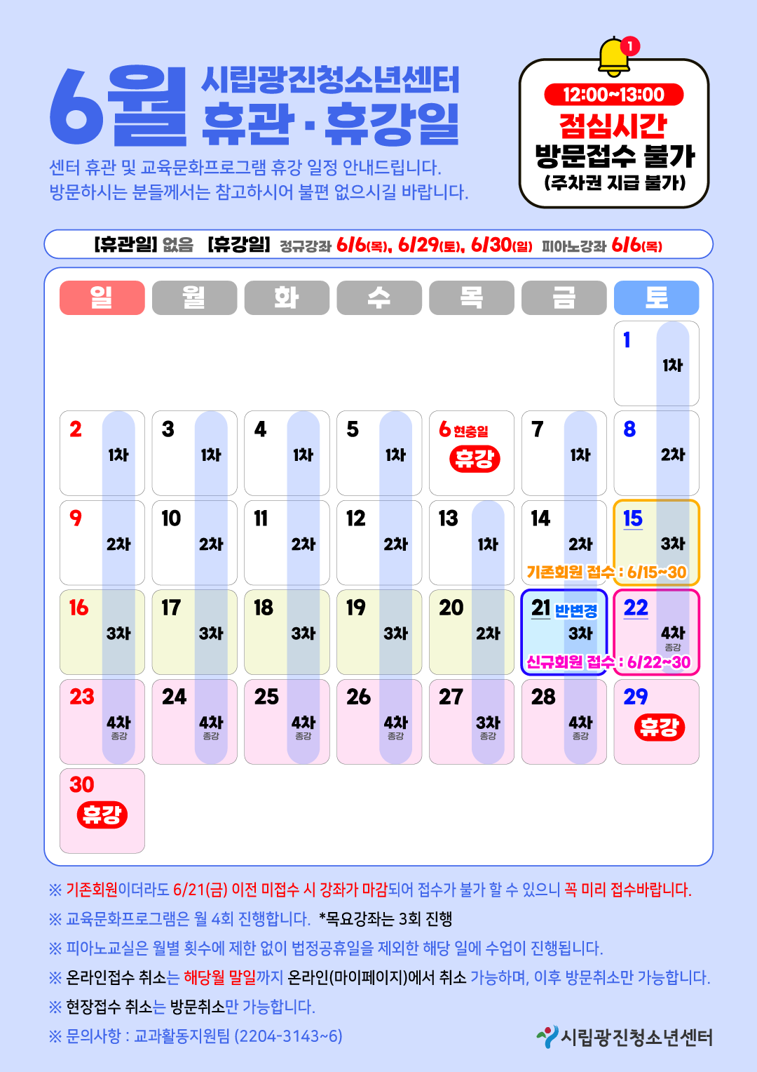 | 6¿ù ¼¾ÅÍ ÈÞ°ü/ÈÞ°ÀÏ ¾È³» | ||