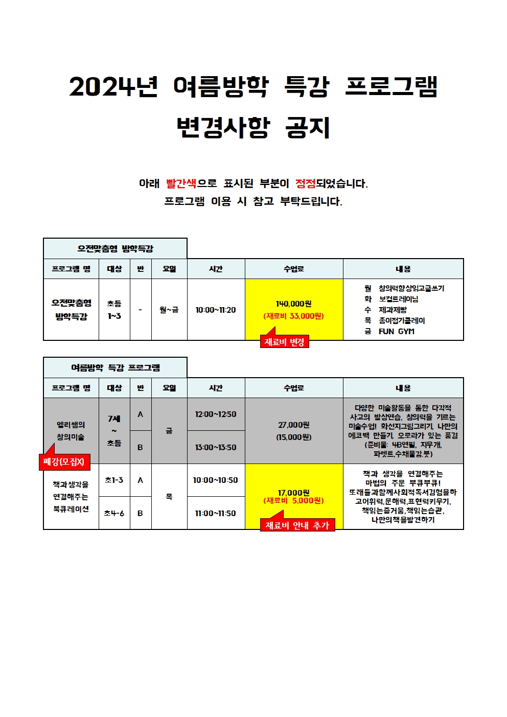 | [¹æÇÐÆ¯°°øÁö] 2024³â ¿©¸§¹æÇÐ ÇÁ·Î±×·¥ º¯°æ»çÇ× °øÁö(6. 4. ±âÁØ) | ||