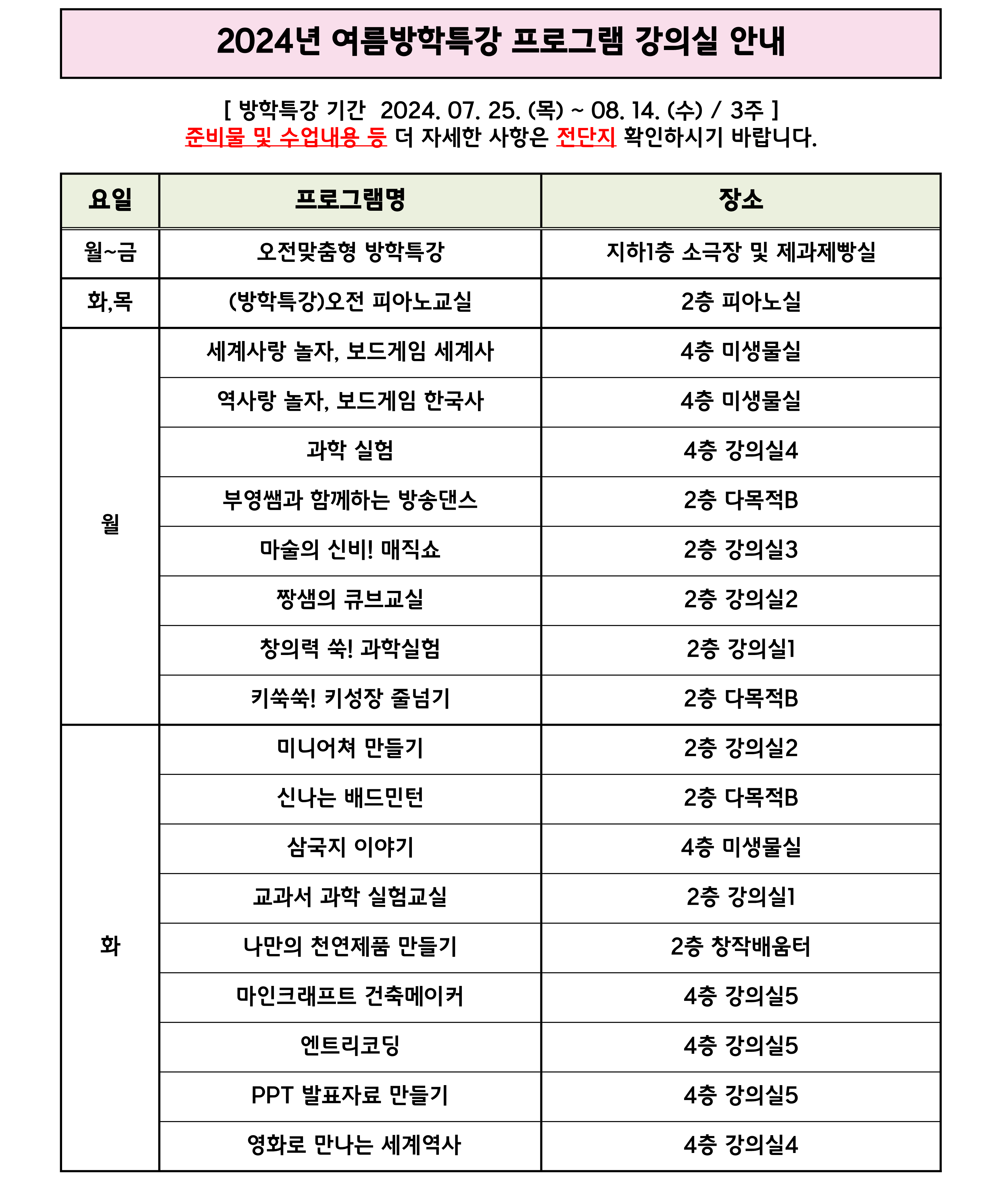 | [¹æÇÐÆ¯° °øÁö] 2024³â ¿©¸§¹æÇÐÆ¯° ÇÁ·Î±×·¥ °ÀÇ½Ç ¾È³» | ||