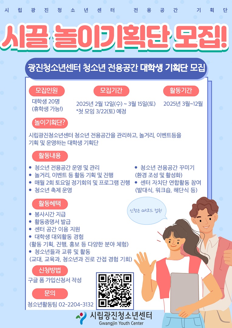 [¸ðÁý] ½Ã²ø ³îÀ̱âȹ´Ü ¸ðÁý! û¼Ò³â Àü¿ë°ø°£ Ȱ¼ºÈ ¹× ³î°Å¸® ¿î¿µ! | ||