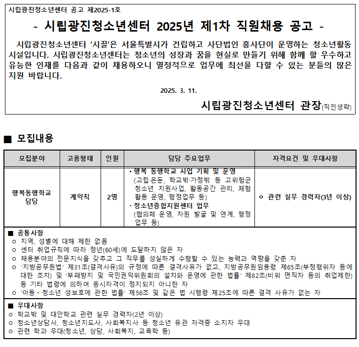 | [ä¿ë] 2025³â 1Â÷ Á÷¿øÃ¤¿ë °ø°í(Çູµ¿ÇàÇб³ ´ã´ç) | ||