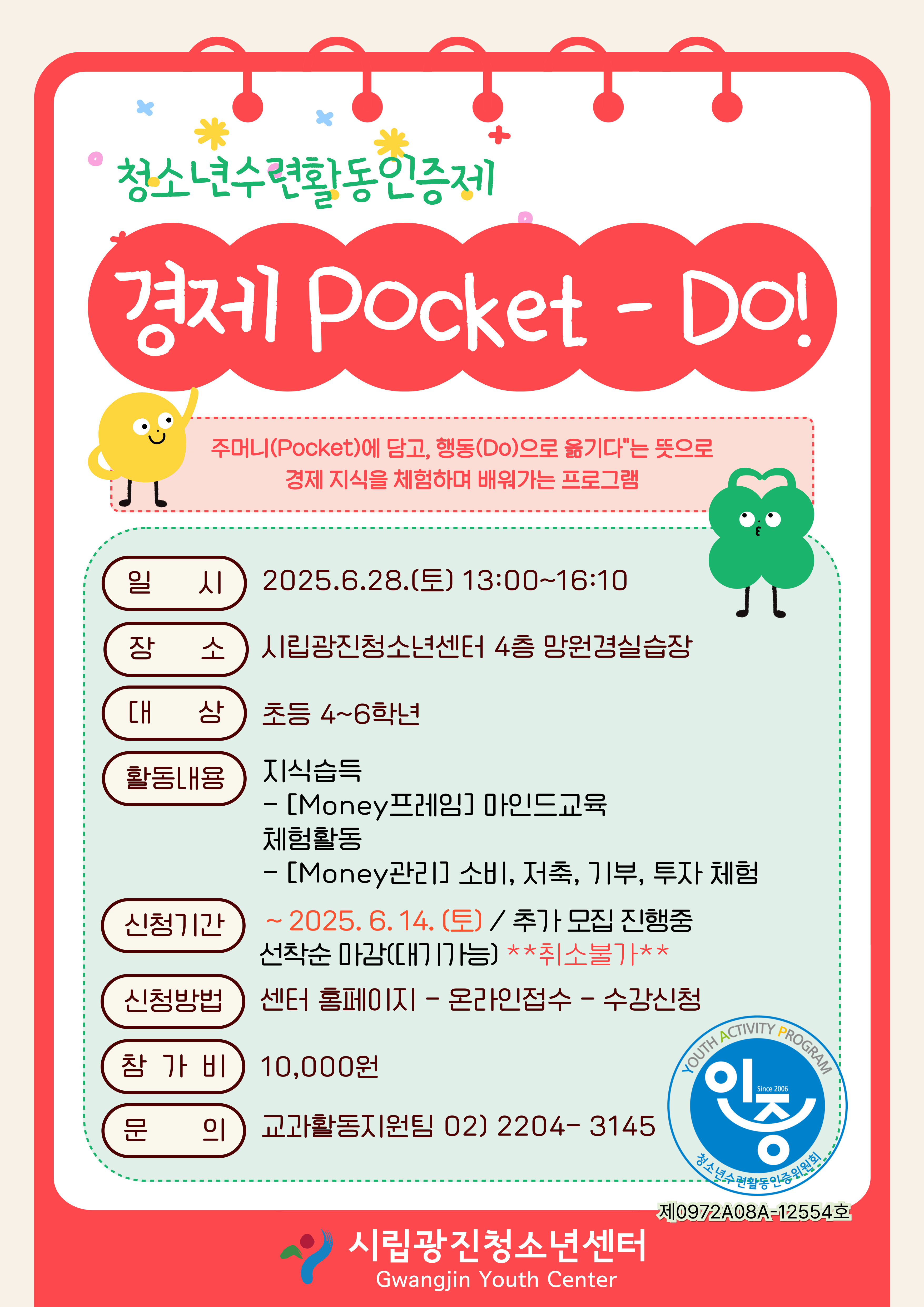 ÀÏ ½Ã : 2025.6.28.(Åä) 13:00~16:10 Àå ¼Ò : ½Ã¸³±¤ÁøÃ»¼Ò³â¼¾ÅÍ ³» °ÀǽÇ(ÃßÈÄ °øÁö) ´ë »ó : Ãʵî 4~6Çгâ Ȱµ¿³»¿ë : Áö½Ä½Àµæ - [MoneyÇÁ·¹ÀÓ] ¸¶Àε屳À° | üÇèȰµ¿ - [Money°ü¸®] ¼Òºñ, ÀúÃà, ±âºÎ, ÅõÀÚ Ã¼Çè ½Åû±â°£ : ~ 2025. 6. 14. (Åä) / Ãß°¡ ¸ðÁý ÁøÇàÁß | ¼±Âø¼ø ¸¶°¨(´ë±â°¡´É) **Ãë¼ÒºÒ°¡** ½Åû¹æ¹ý : ¼¾ÅÍ È¨ÆäÀÌÁö - ¿Â¶óÀÎÁ¢¼ö - ¼ö°½Åû Âü °¡ ºñ : 10,000¿ø ¹® ÀÇ : ±³°úȰµ¿Áö¿øÆÀ 02) 2204- 3145  |