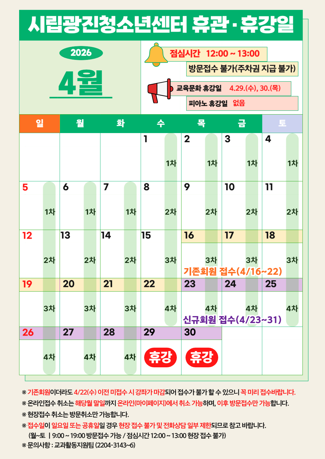 <2026³â 5¿ù °Á Á¢¼öÀÏÀÚ> ¡à ±âÁ¸È¸¿ø Á¢¼ö : 4.16.~4.22. ¡à ±âÁ¸È¸¿ø ¹Ýº¯°æ / ½Å±Ôȸ¿ø Á¢¼ö : 4.23.~¸»ÀÏ ¡Ú Á¢¼ö±â°£ÀÌ ÀÏ¿äÀÏÀ̳ª °øÈÞÀÏÀÏ °æ¿ì ÇöÀåÁ¢¼ö¿Í ÀüÈ »ó´ãÀÌ ºÒ°¡ÇÏ´Ï Âü°í ÇϽñ⠹ٶø´Ï´Ù. ¡Ú Á¢¼ö ¹× ȯºÒ °ü·Ã ³»¿ëÀº ȨÆäÀÌÁö ȤÀº Àü´ÜÁö È®ÀÎÇØÁֽñ⠹ٶø´Ï´Ù. ¢ºÈ¨ÆäÀÌÁö Á¢¼ö ¹× ȯºÒ ³»¿ë È®ÀÎÇϱâ(Ŭ¸¯)