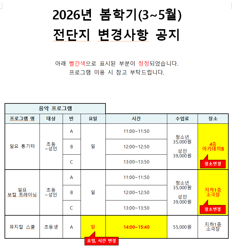 | [º¯°æ»çÇ× ¾È³»]2026³â º½Çбâ(3~5¿ù) ÇÁ·Î±×·¥ º¯°æ»çÇ× °øÁö(2.12.±âÁØ) | ||