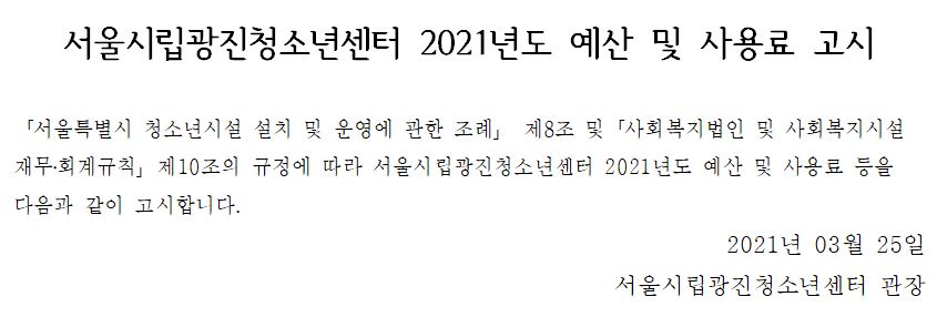 | ¼¿ï½Ã¸³±¤ÁøÃ»¼Ò³â¼¾ÅÍ 2021³âµµ ¿¹»ê ¹× »ç¿ë·á °í½Ã | ||